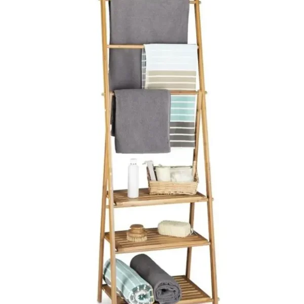 Bambu 3 Raflı Havlu Askısı Banyo Düzenleyici Havluluk Organize