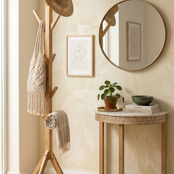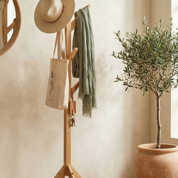 Bambu Portmanto Askılık 8’li Modern Vestiyer Ayaklı Askılık Ahşap Elbise Askısı