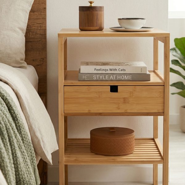 Bambu Raflı Çekmeceli Başucu Yatak Odası Yan Sehpa Şifonyer Düzenleyici Komodin