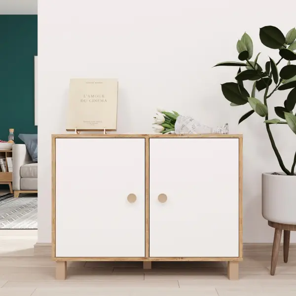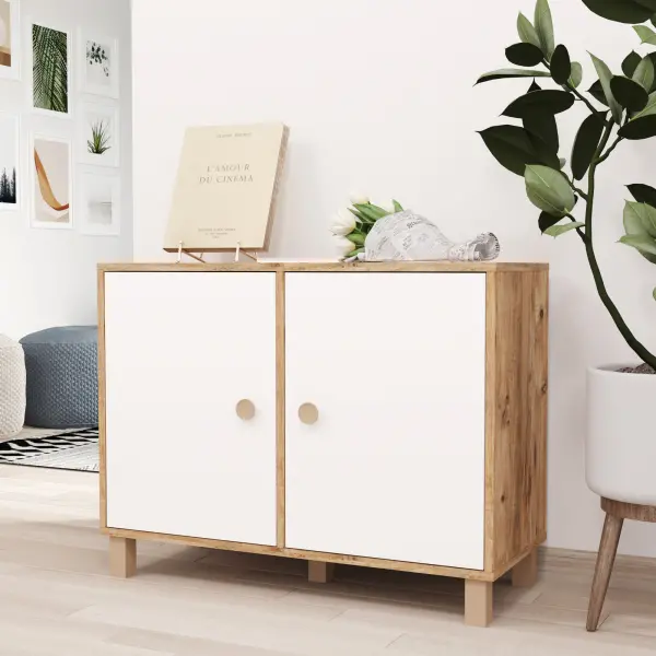 Robin Home Merlin Çok Amaçlı Dolap Ahşap Ayak, 2 Kapak, Çam-Beyaz-Kayın AR35