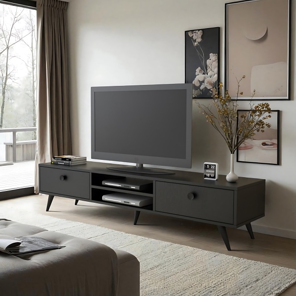 Robin Home Arya Tv Ünitesi Televizyon Sehpası Ahşap Ayak 175 Cm Siyah AR5