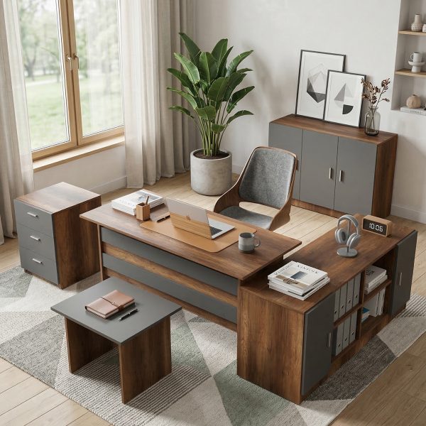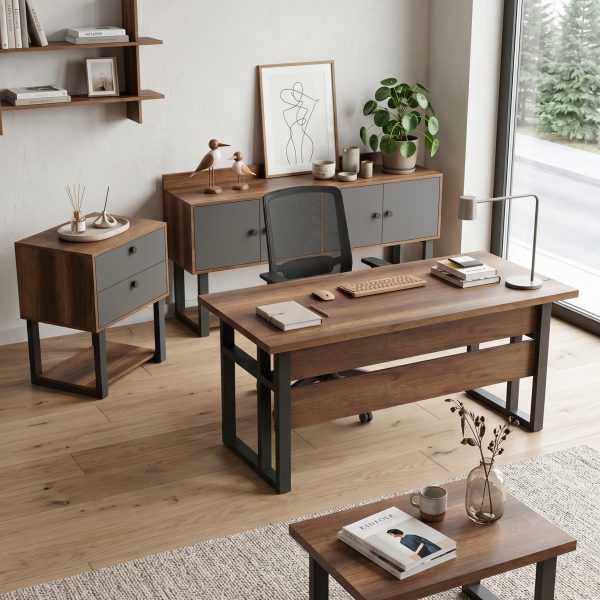 Robin Home Verona ABCDE Ofis Büro Masa Takımı Meşe-Siyah