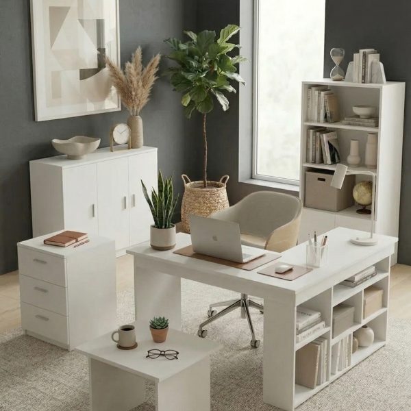 Robin Home Boston L Ofis Çalışma Masası Ofis Büro Takımı Masa Sehpa Keson Kitaplık