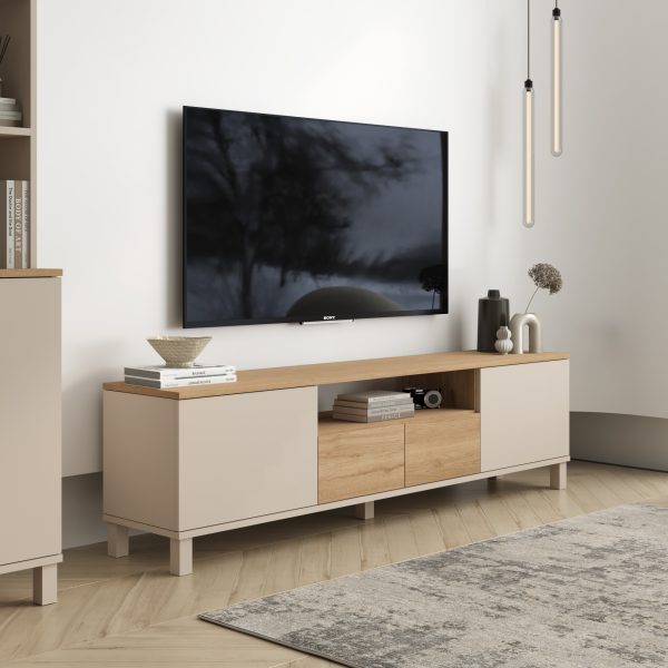 Robin Home Urban Tv Ünitesi Sehpası 2 Kapaklı 2 Çekmeceli Ahşap Ayaklı 180cm Kumsal-Sepet