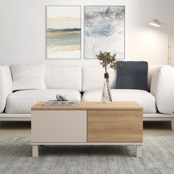 Robin Home Luka Orta Sehpa Ahşap Ayaklı Çekmeceli Raflı Kumsal-Sepet
