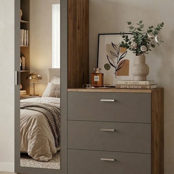 Robin Home Lyana Aynalı Şifonyer Gardırop Çam-Gri