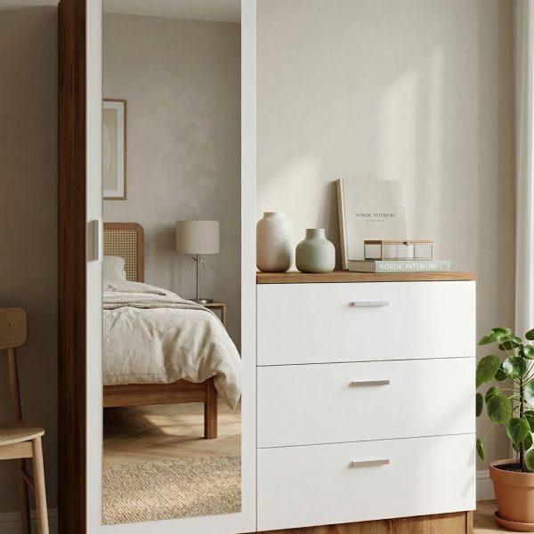 Robin Home Lyana Aynalı Şifonyer Gardırop Çam-Beyaz