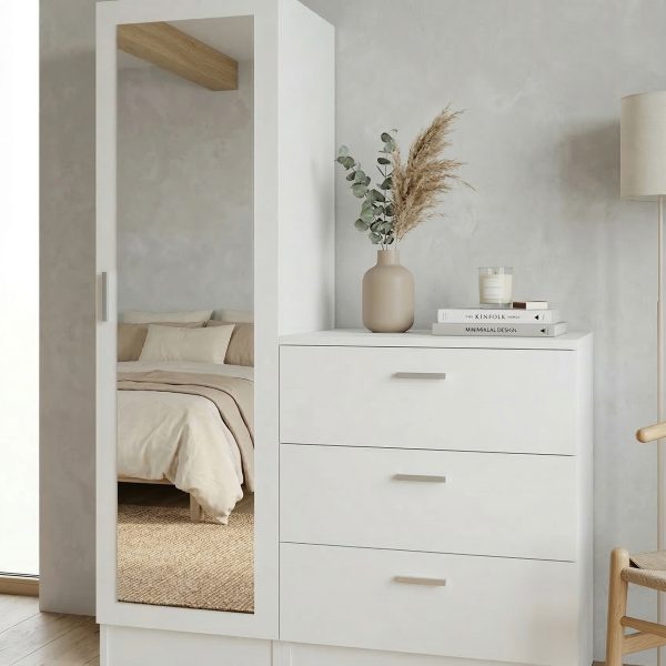 Robin Home Lyana Aynalı Şifonyer Gardırop Beyaz