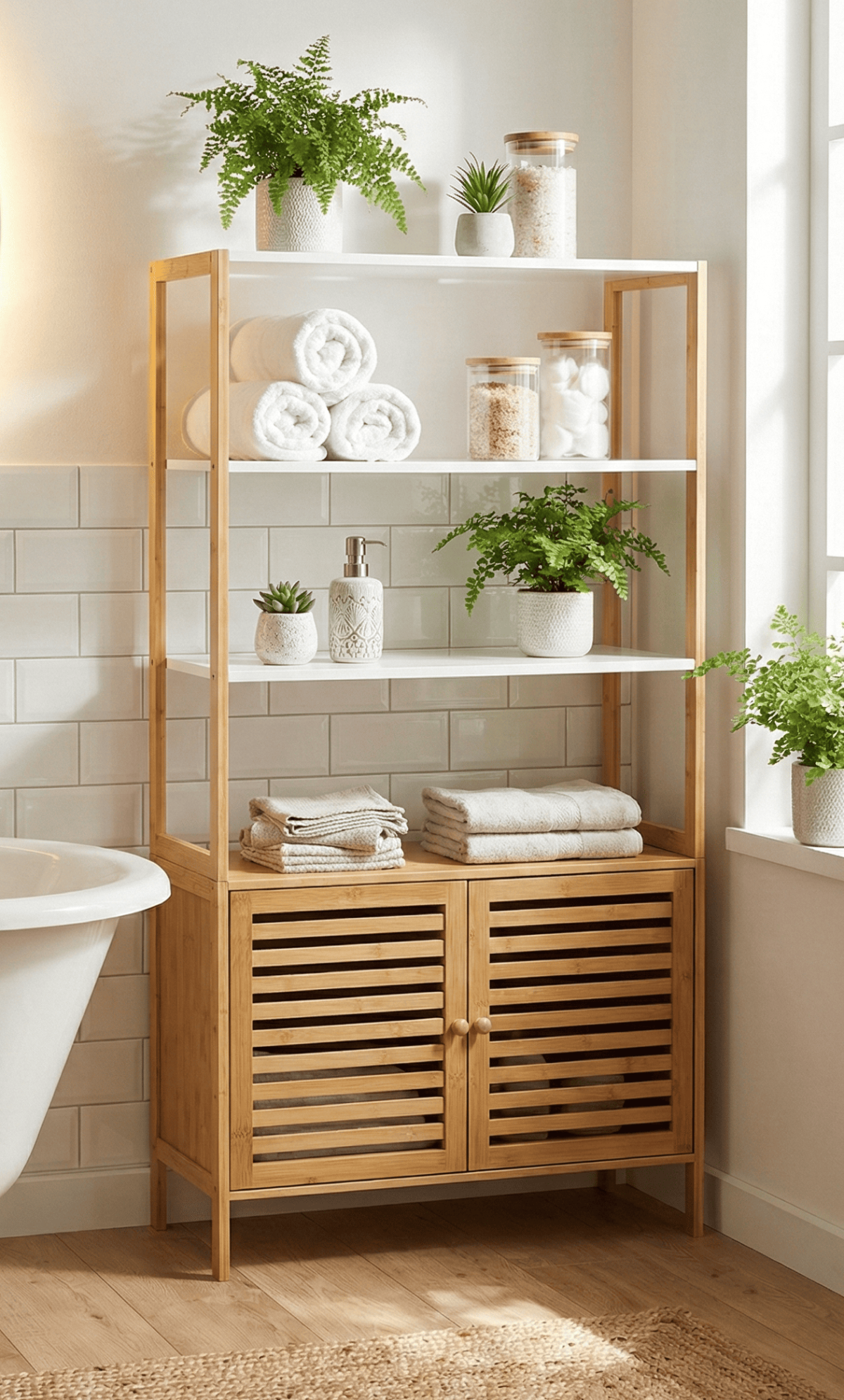 Bambu Çok Amaçlı Raflı Banyo Düzenleyici 2 Kapaklı Dolap için 1 değerlendirme