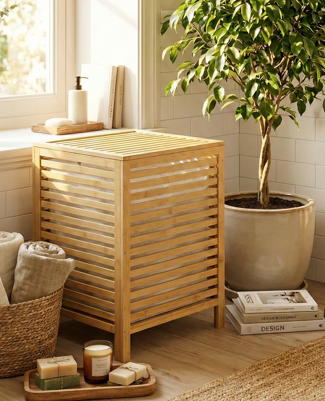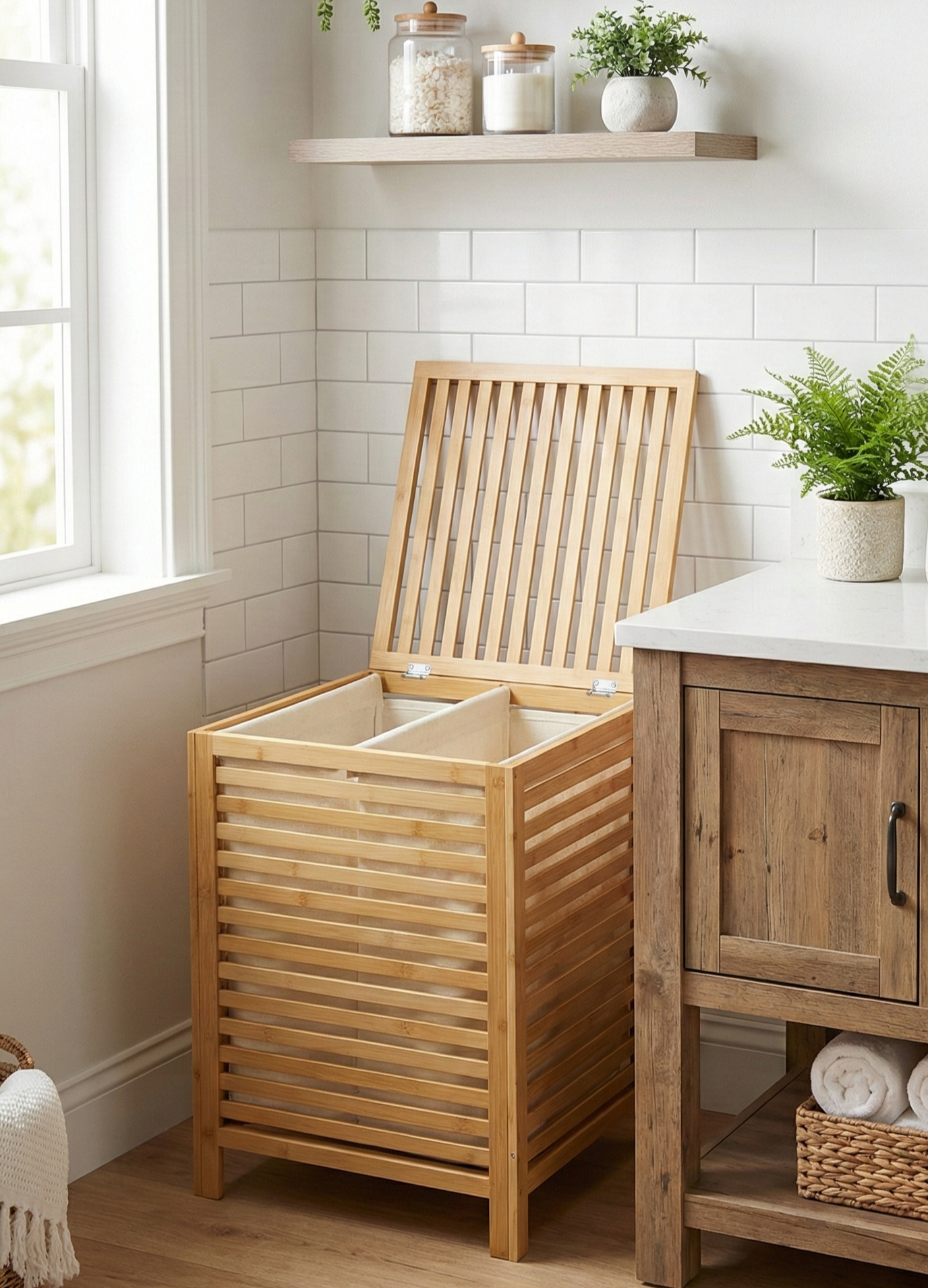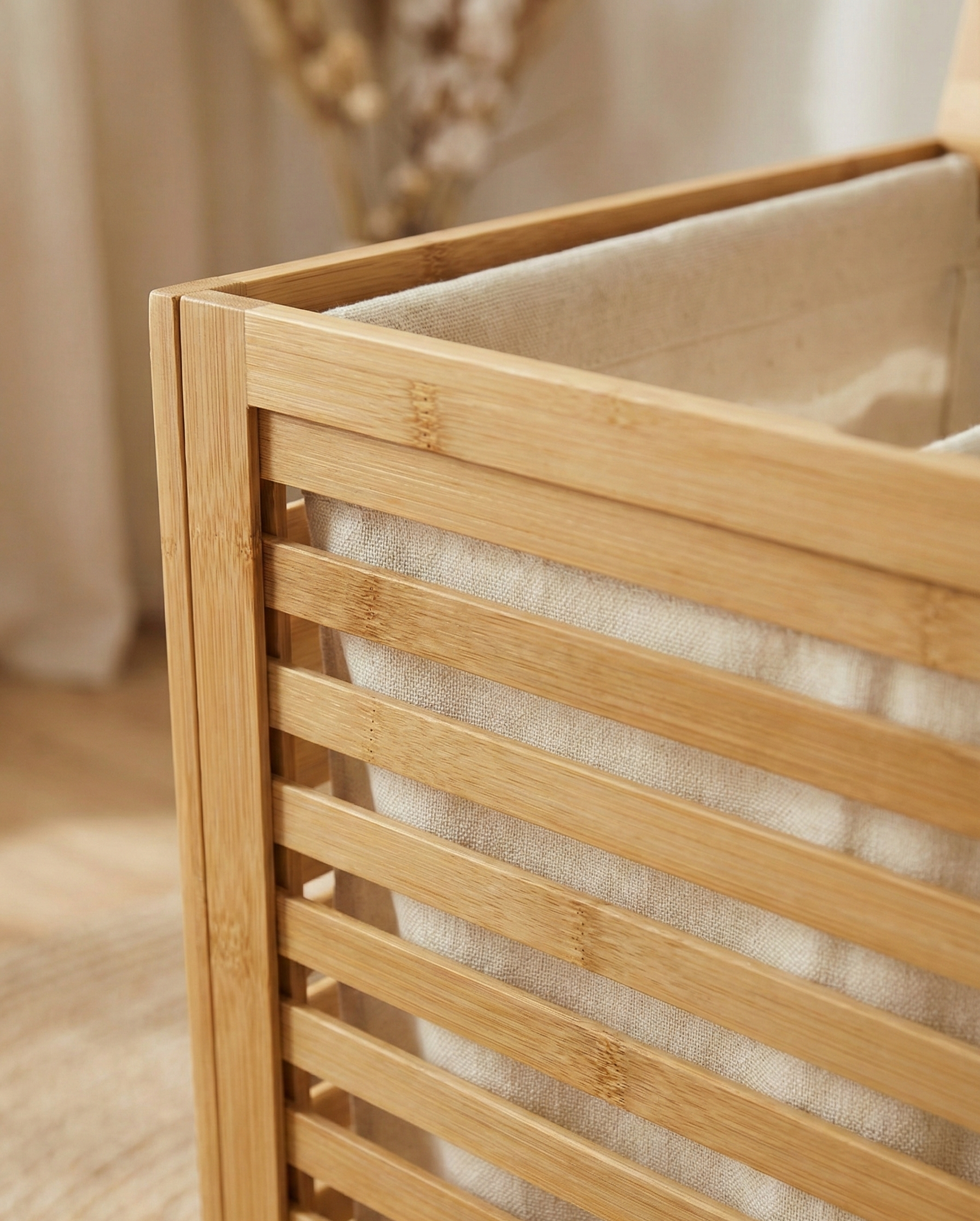 Bambu çamaşır sepeti, vidalar ve diğer donanımlar da dahil olmak üzere kurulum için ihtiyaç olan her şey ile birlikte gelir.
