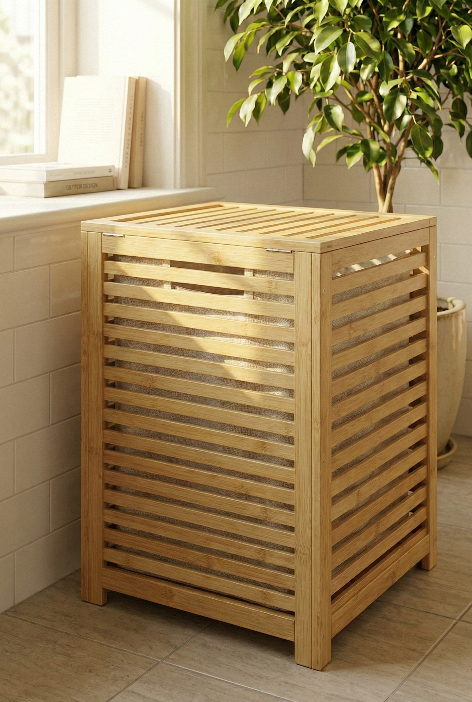 Kapak içinde iki bölmeli kumaş kirli sepeti mevcuttur.