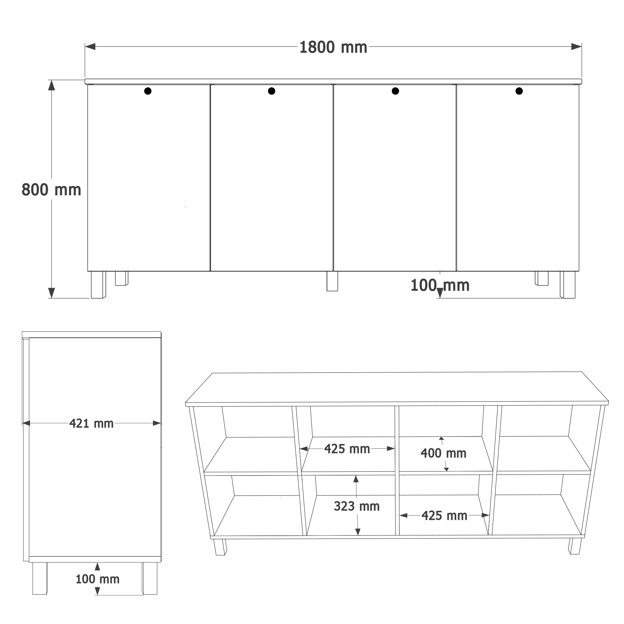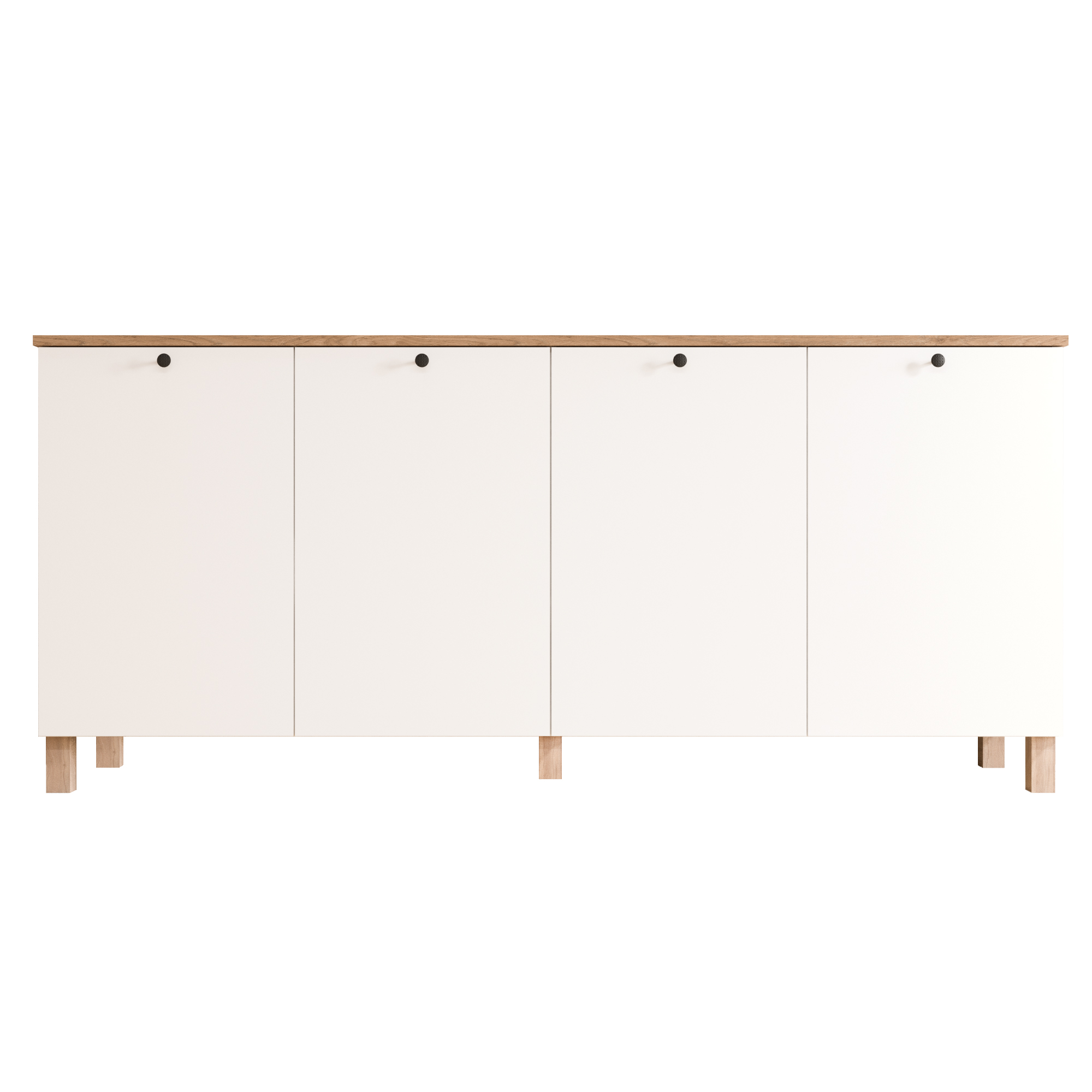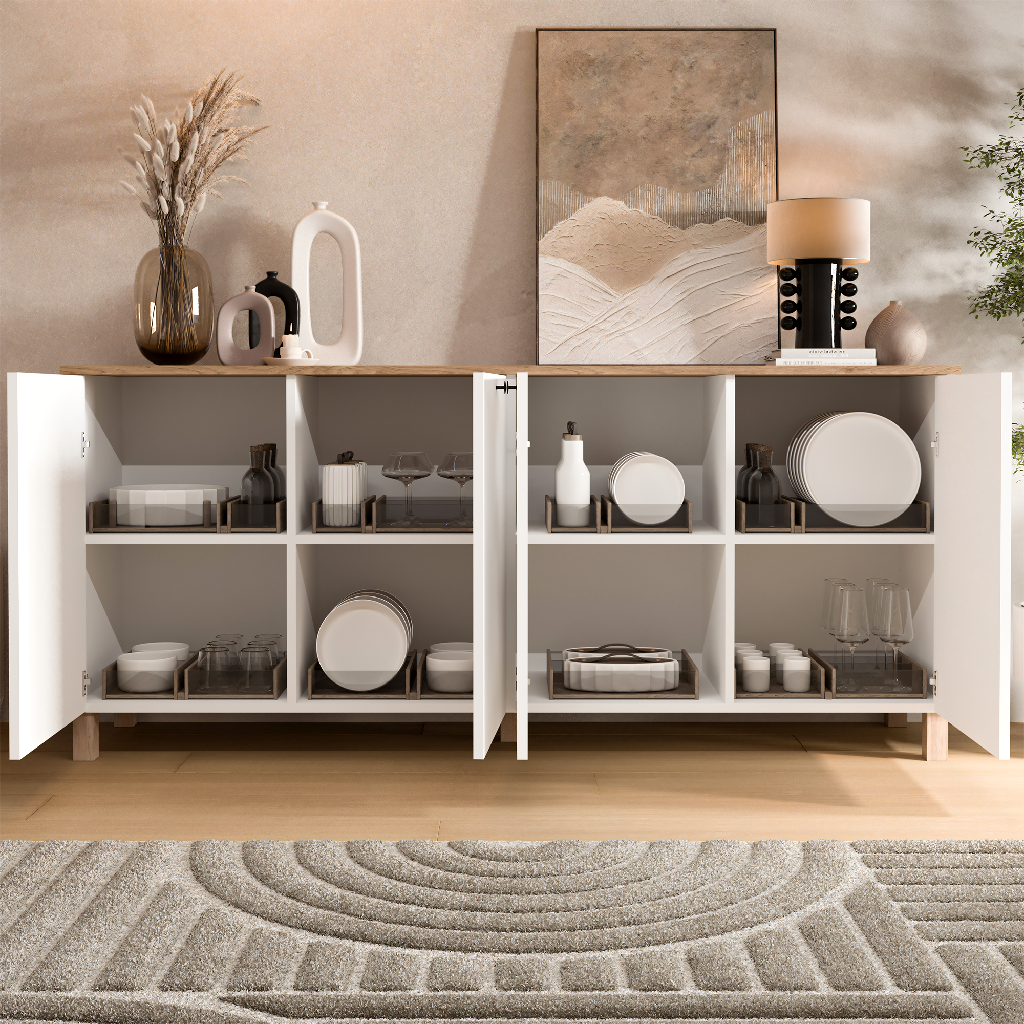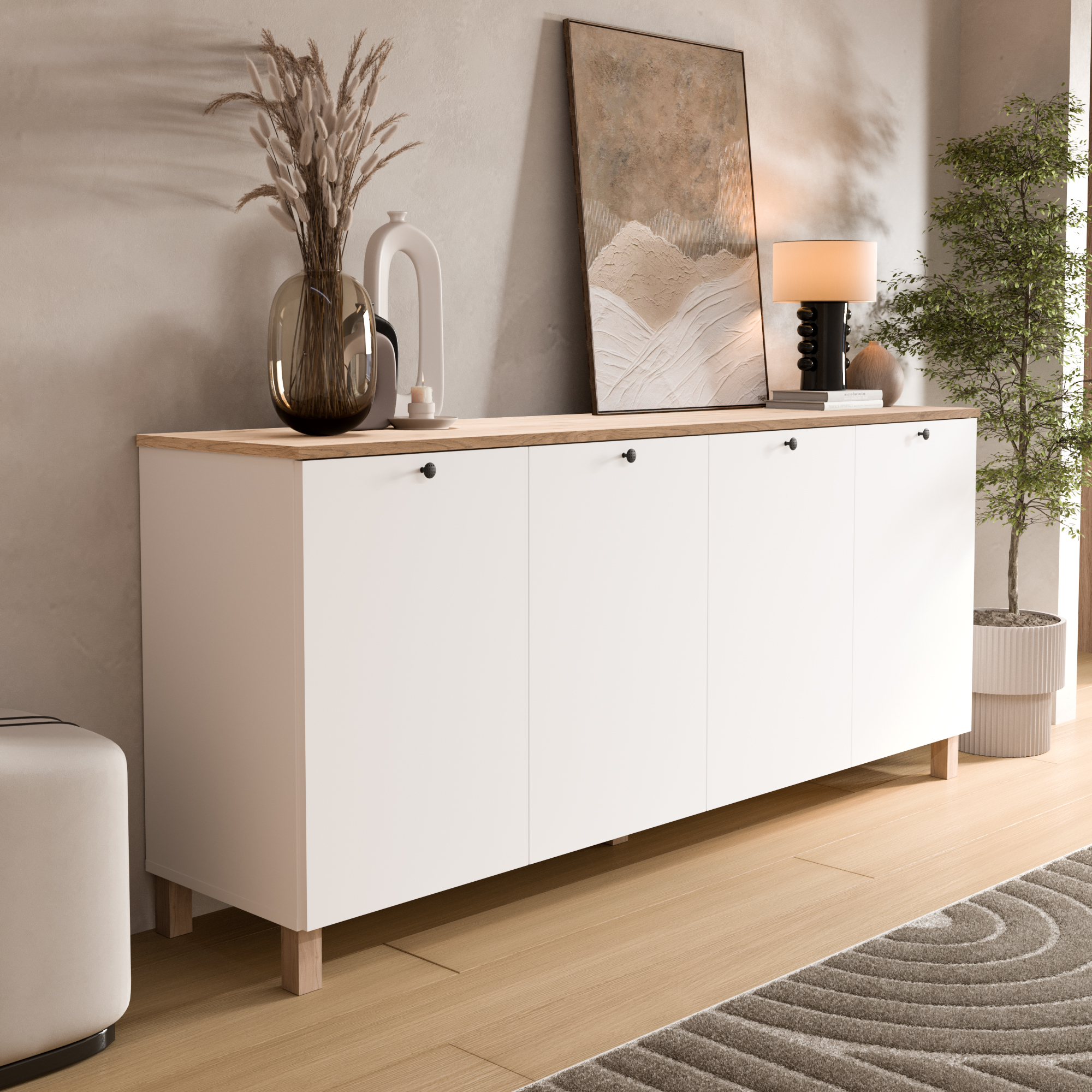 Robin Home Alaska Konsol 4 Kapaklı Ahşap Ayaklı 180cm Sepet-Beyaz