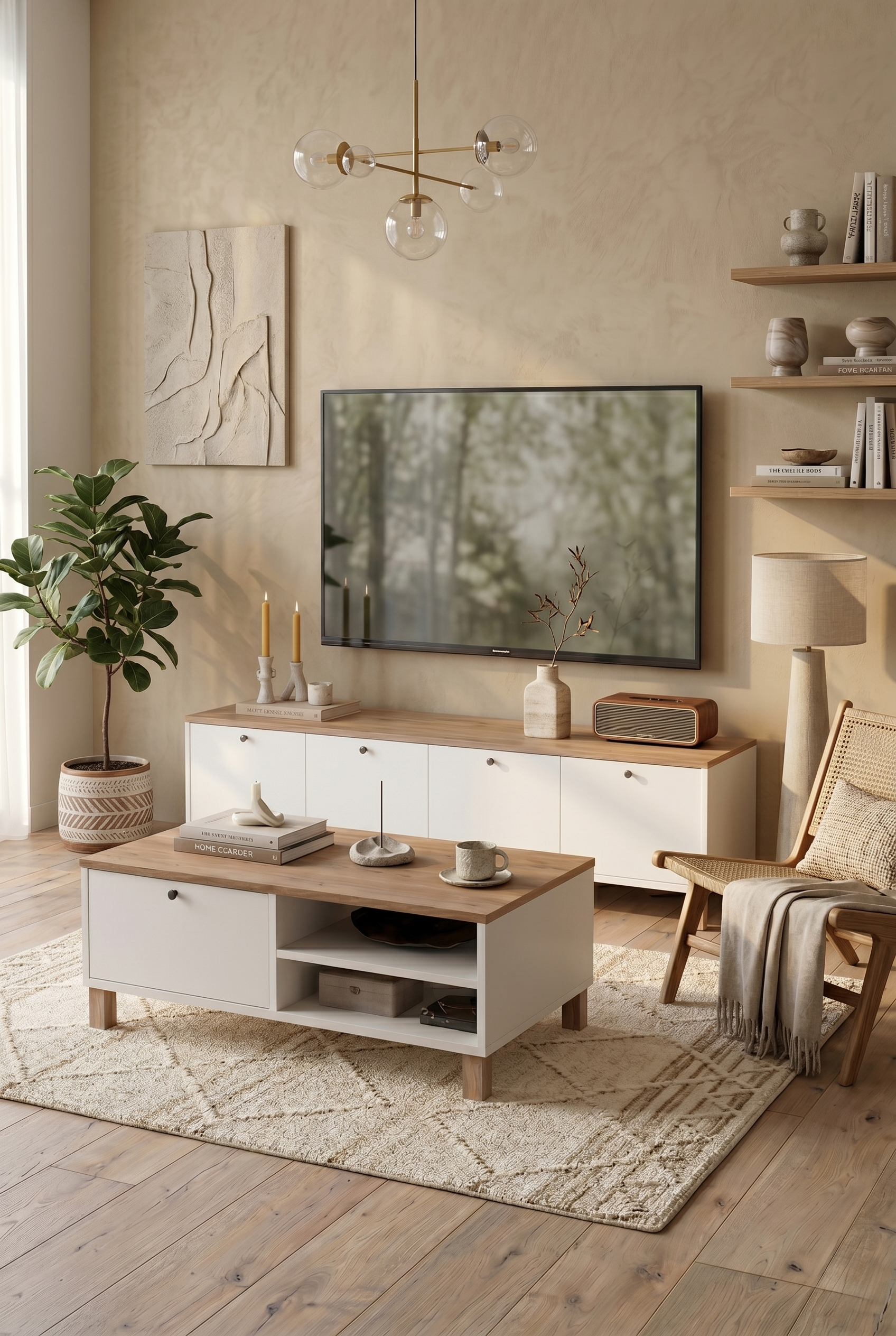 Robin Home AlaskaTv Ünitesi Sehpası 4 Kapaklı Ahşap Ayaklı 180cm Sepet-Beyaz