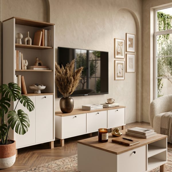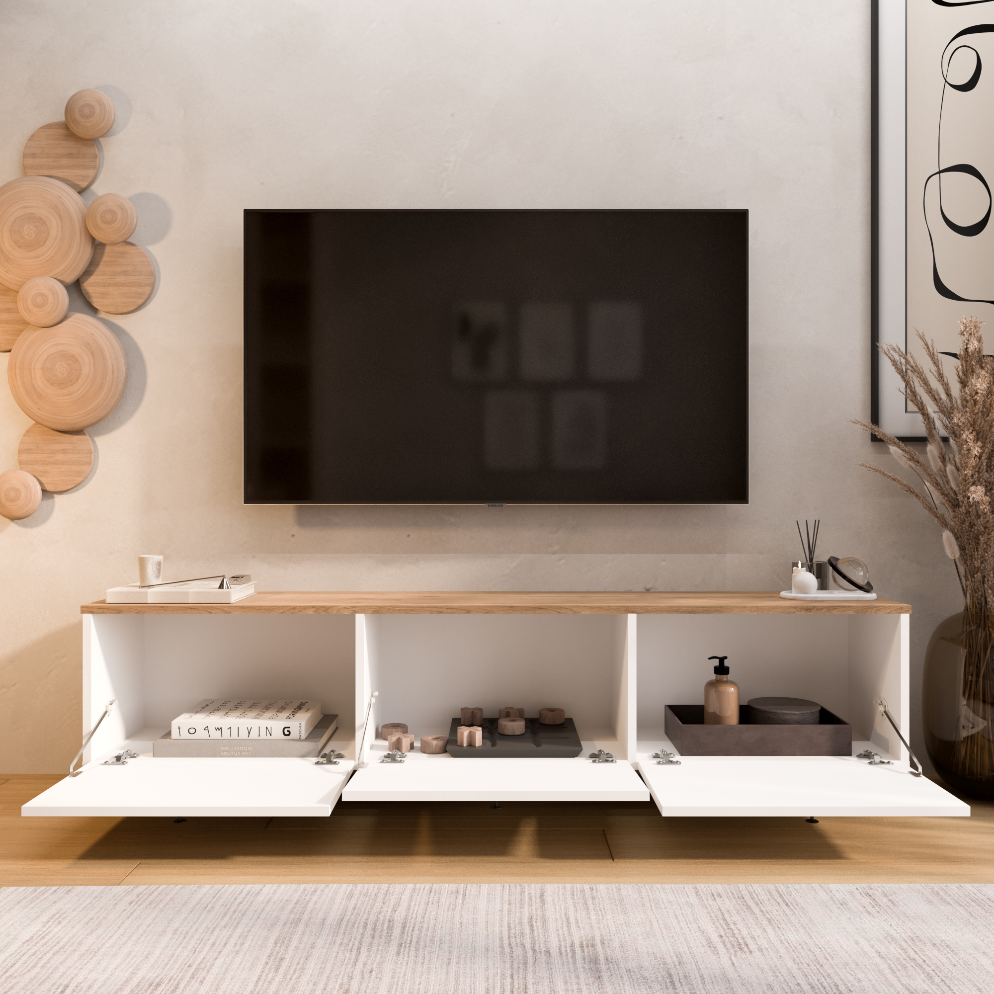 Robin Home Alaska Tv Ünitesi Sehpası 3 Kapaklı Ahşap Ayaklı 180cm Sepet-Beyaz