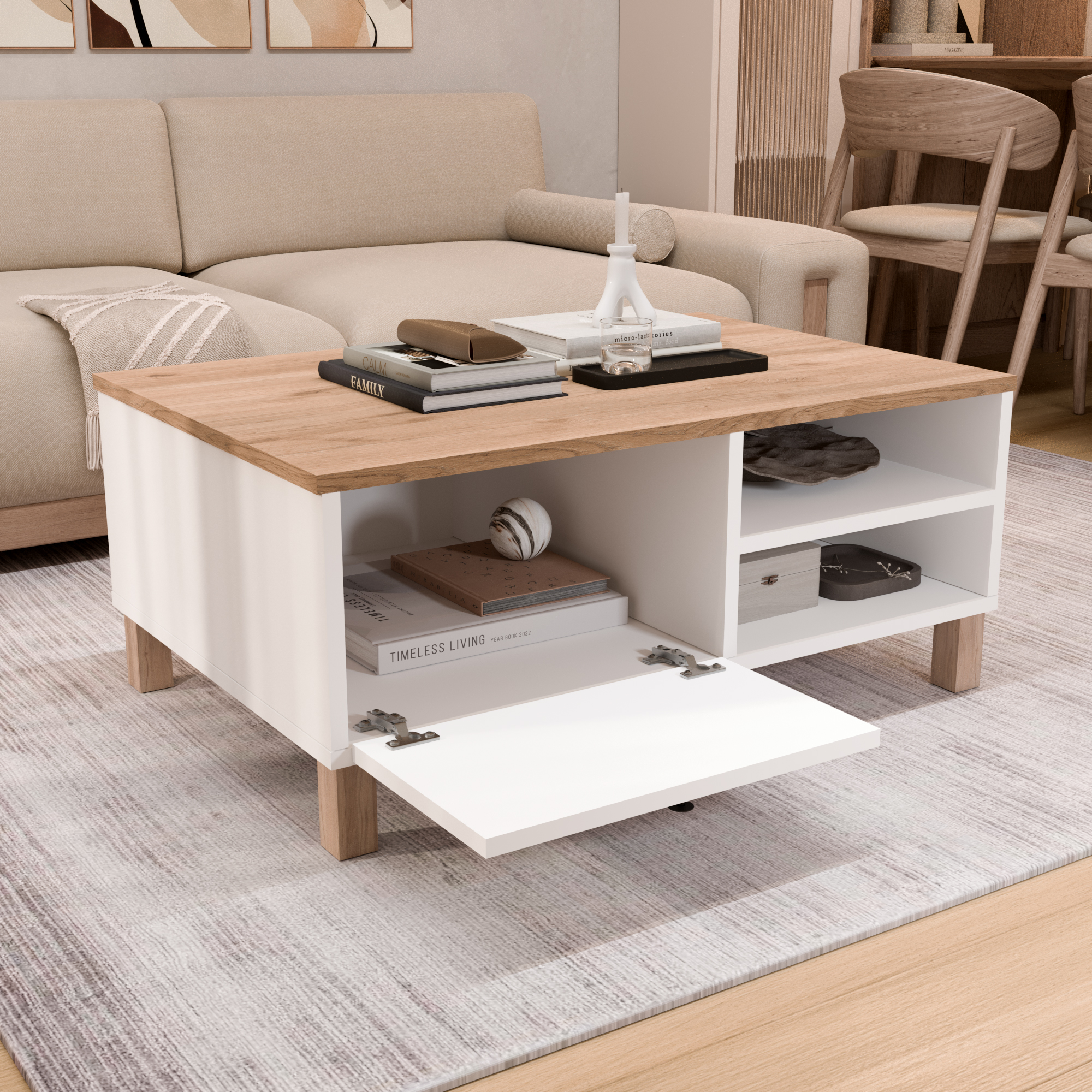 Robin Home Alaska Orta Sehpa Ahşap Ayaklı Kapaklı Sepet-Beyaz