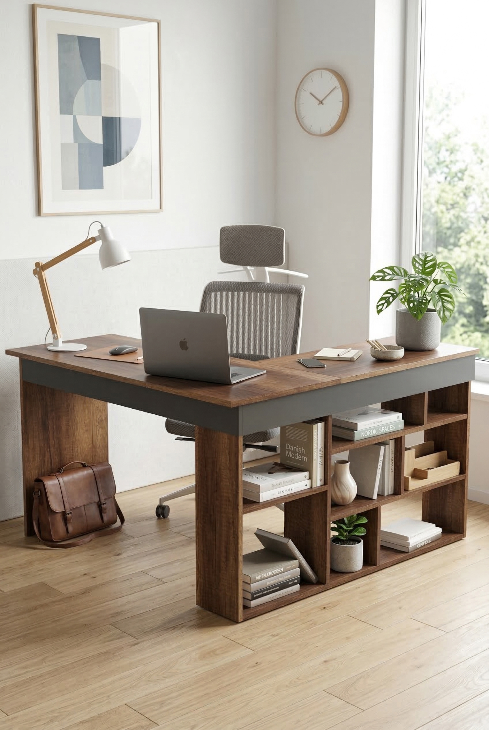 Robin Home Boston Kitaplık Raflı Çalışma Masası L Masa Ofis Çalışma Masası Barok-Antrasit