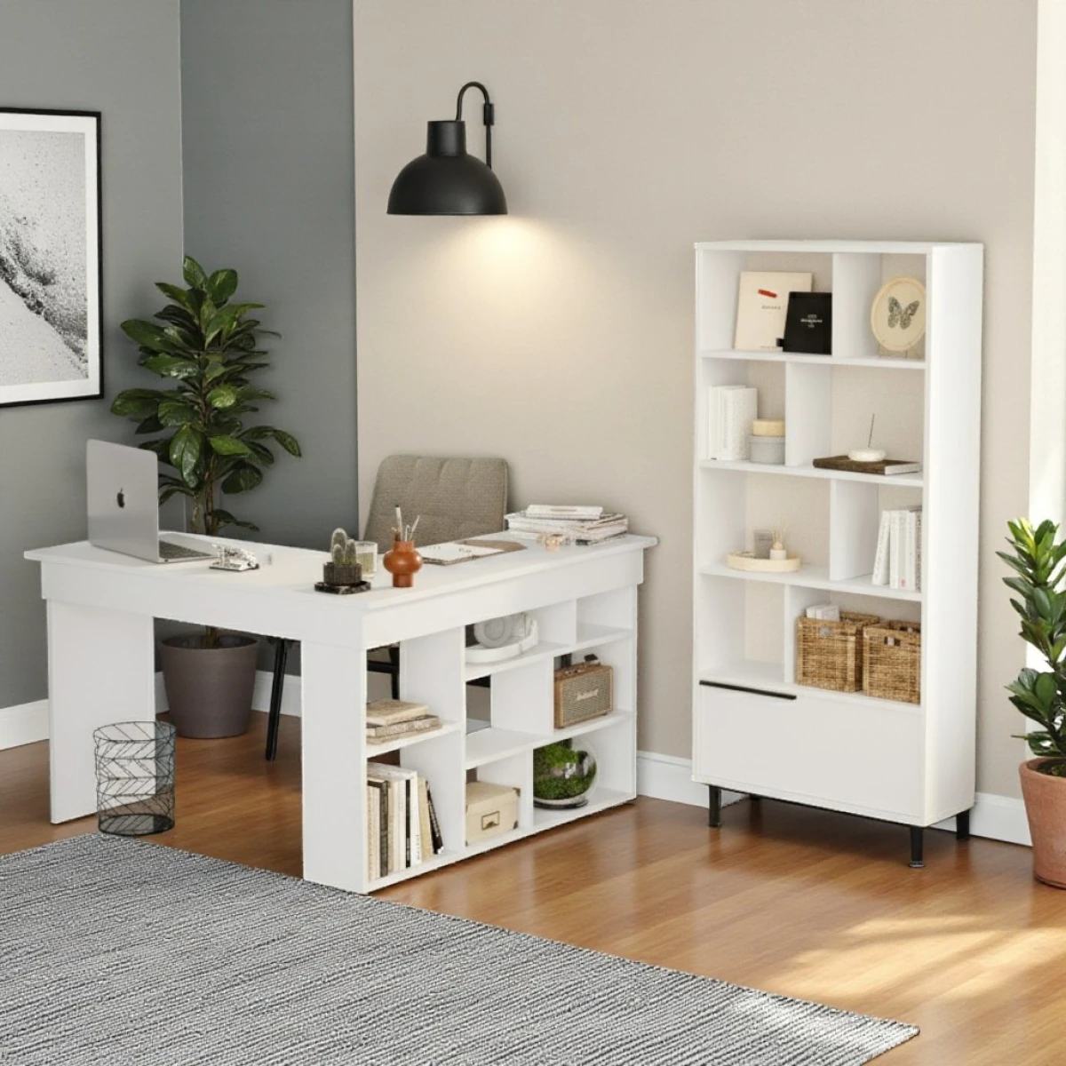 Robin Home Çalışma Masası & Kitaplık 2’li set Beyaz