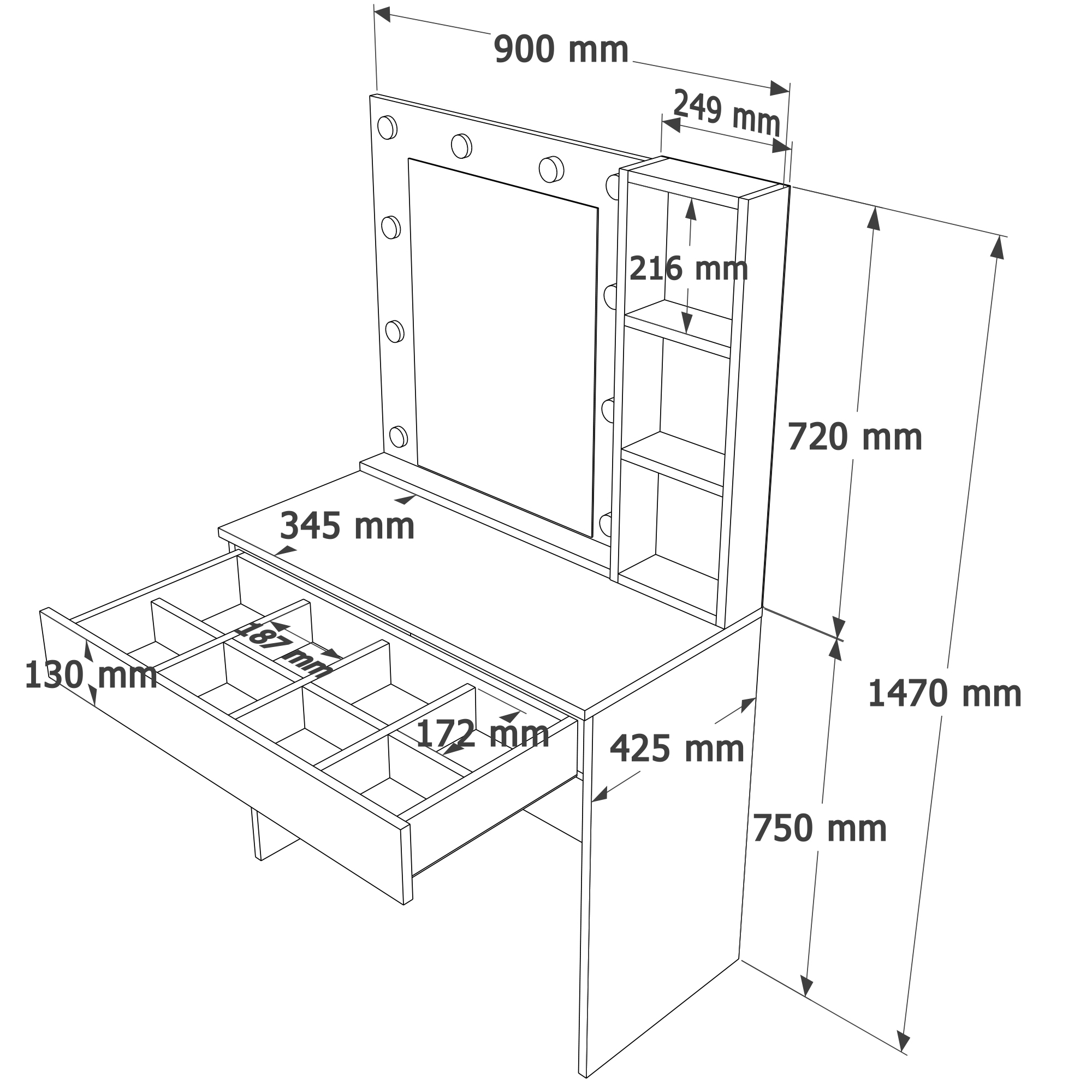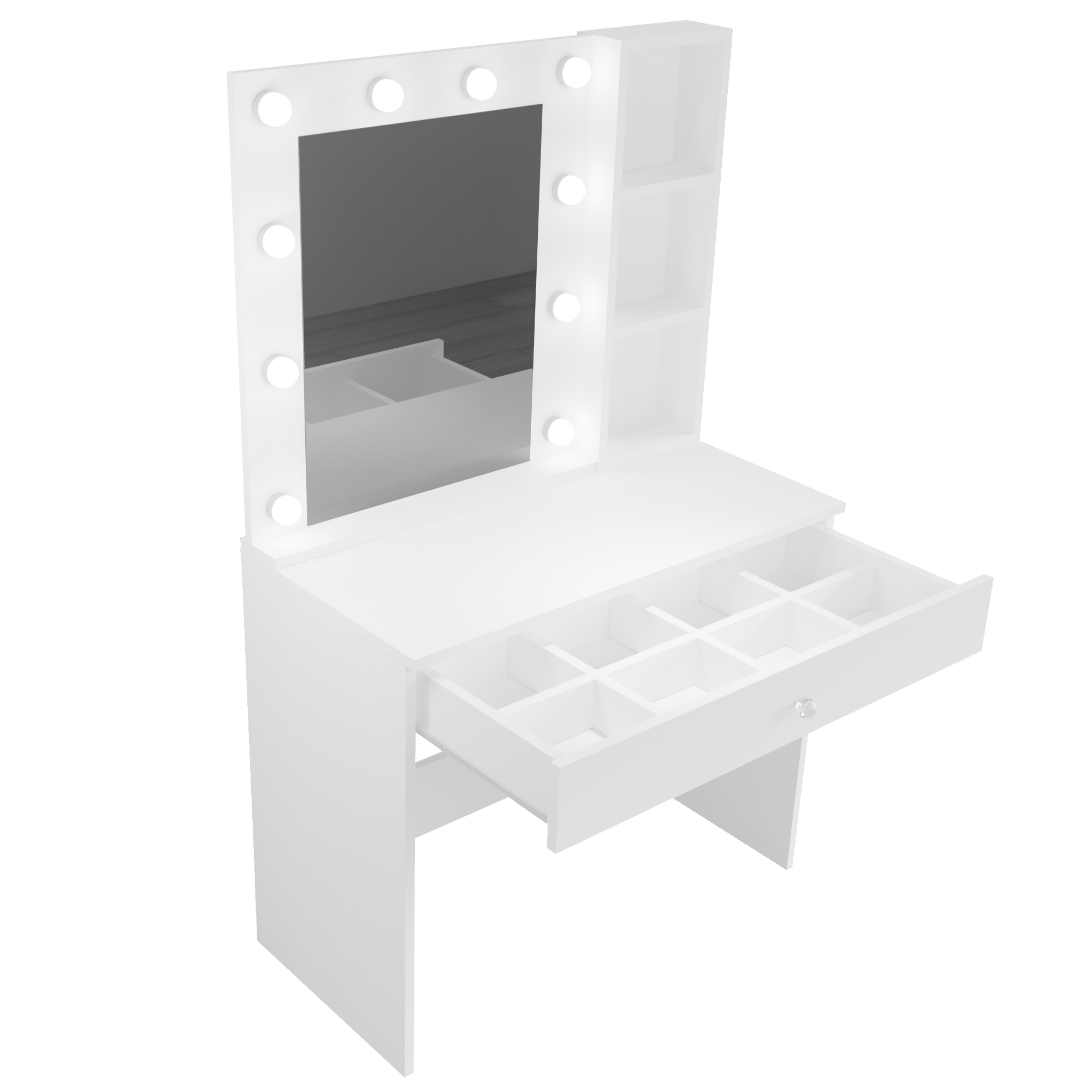 Robin Home Hollywood Makyaj Masası Çekmeceli Düzenleyici Hollywood Led Işıklı Raflı Beyaz