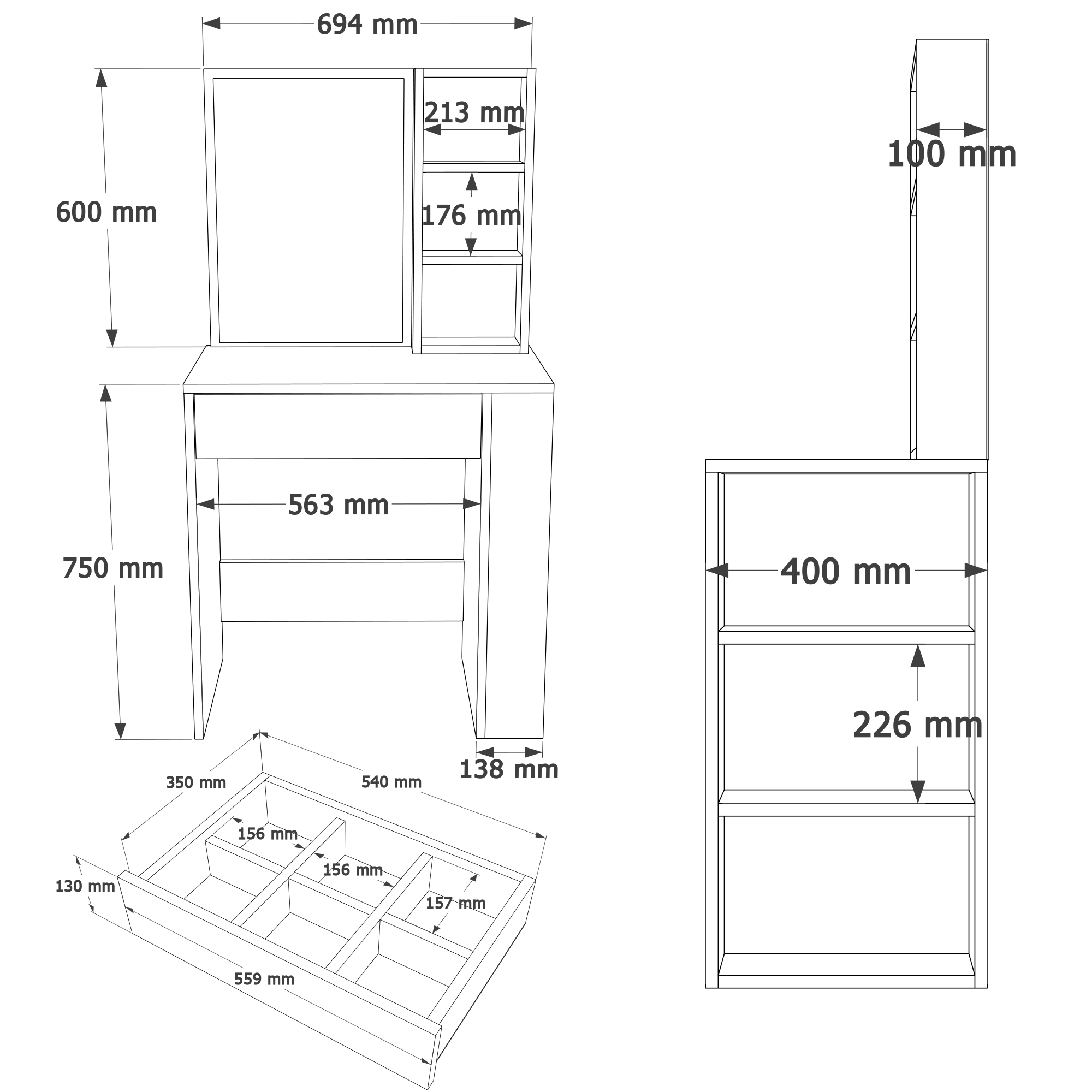 Kullanılan Malzemeler : 1.sınıf E1 kalite standartlarında çevre ve çocuk sağlığına uygun melamin kaplı 18mm yonga levha kullanılmıştır.
