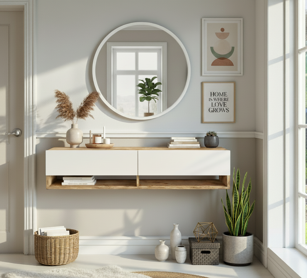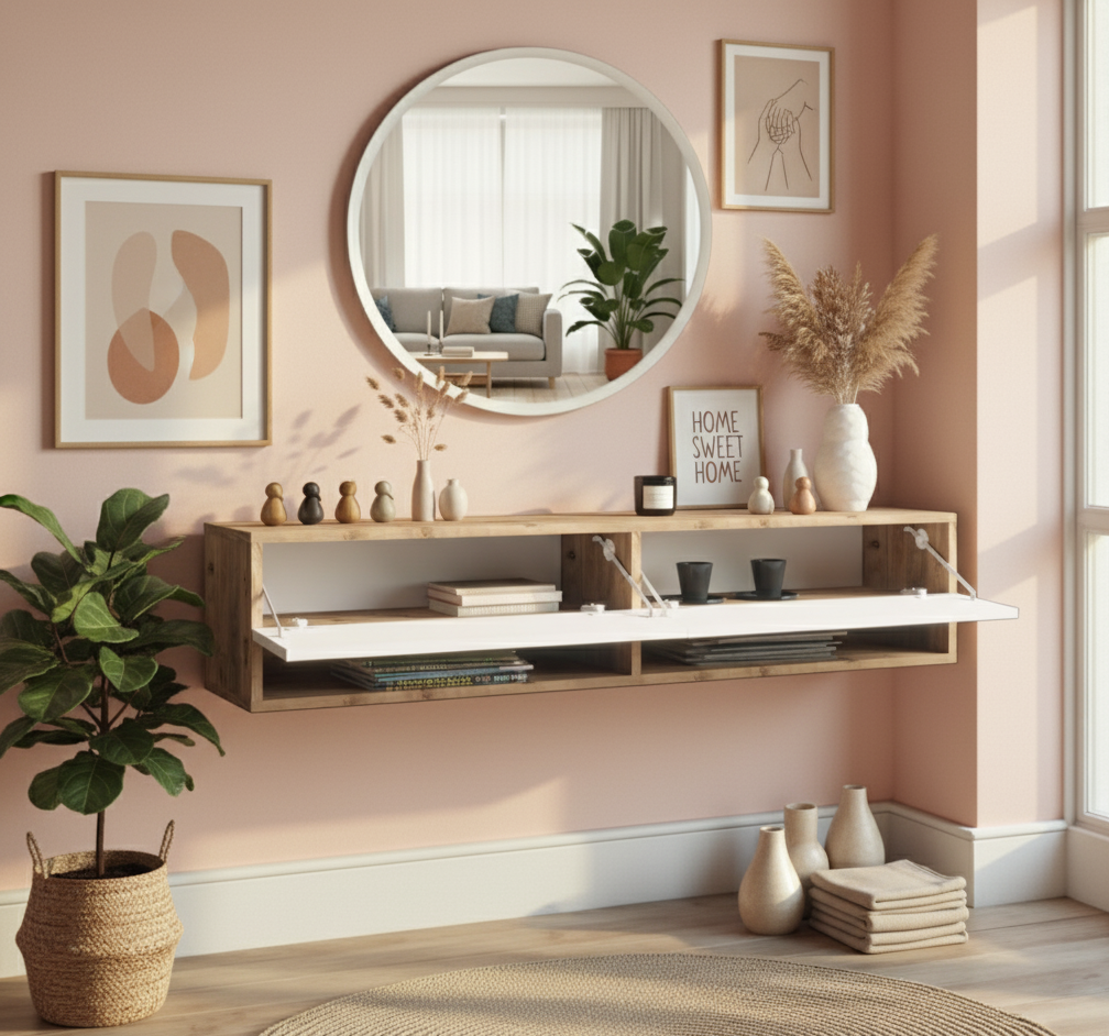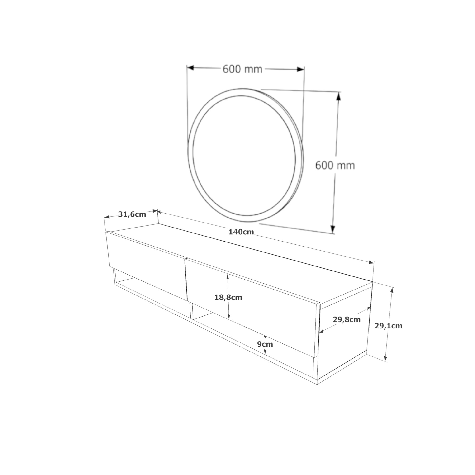 Robin Home Lia Aynalı Dresuar Duvara Monte Antre Hol 140cm Çam- Beyaz