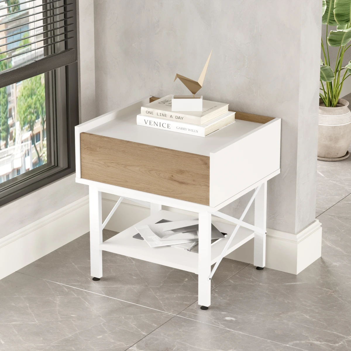 Robin Home Oslo Orta Sehpa Ofis Sehpa Beyaz Metal Ayaklı Sepet-Beyaz