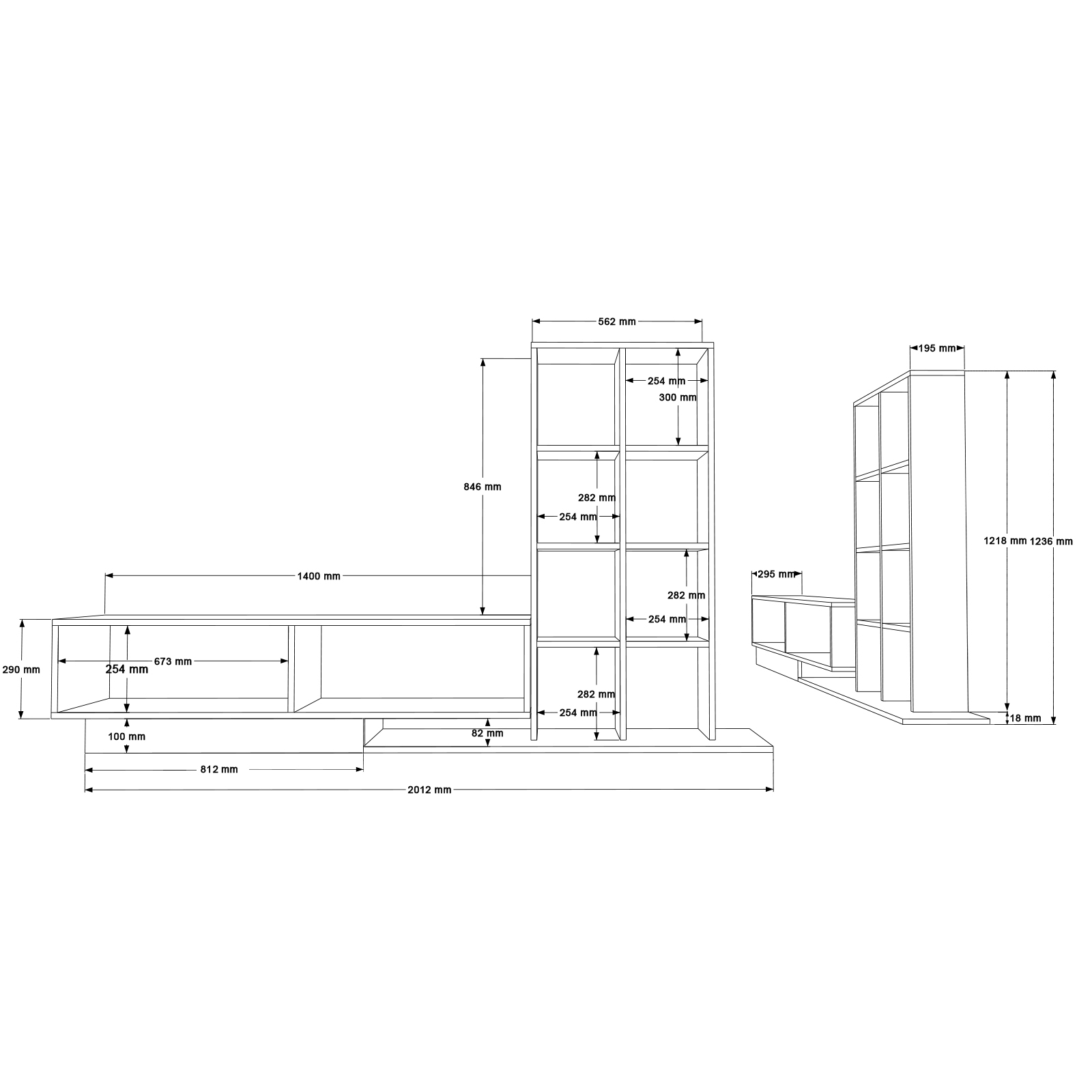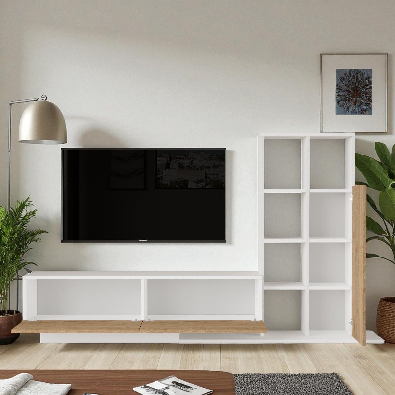 Robin Home Tv Ünitesi Kapaklı Kitaplık Raflı Beyaz