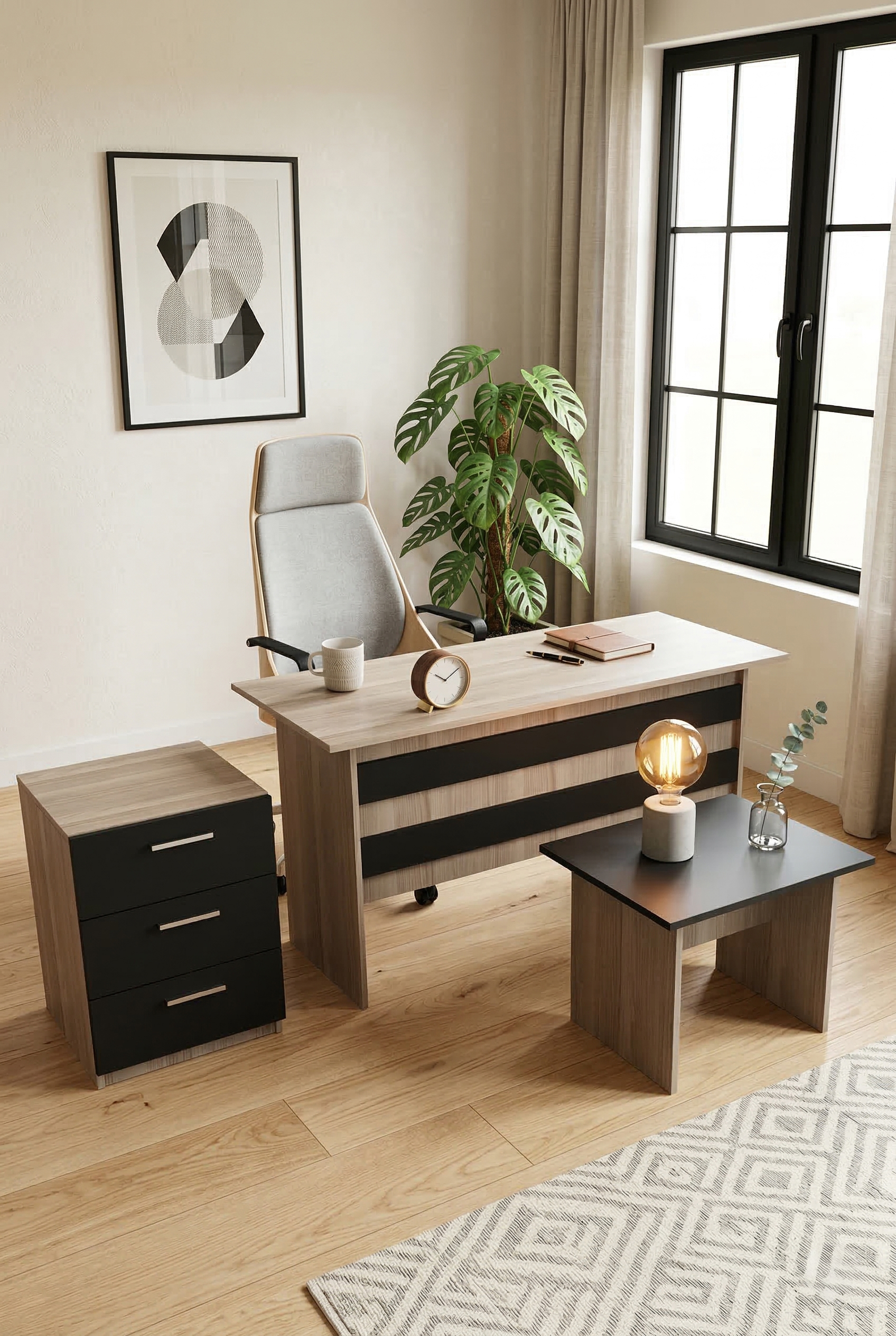 Robin Home Verona ABC Ofis Büro Masa Takımı Meşe-Siyah