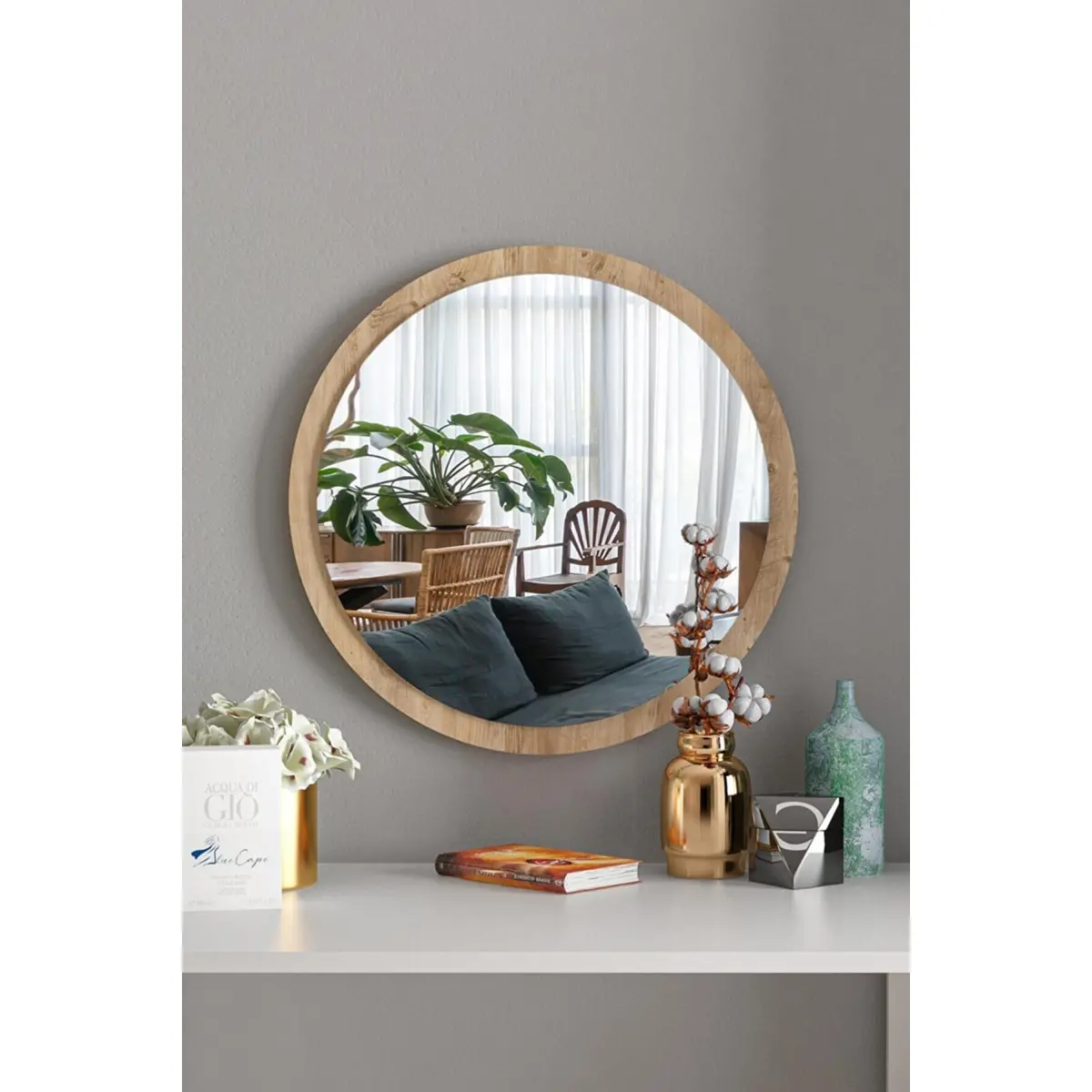 | Yuvarlak Ayna 45CM Atlantik Çam Dresuar Hol Koridor Duvar Salon Banyo Wc Ofis Çocuk Yatak Odası Boy